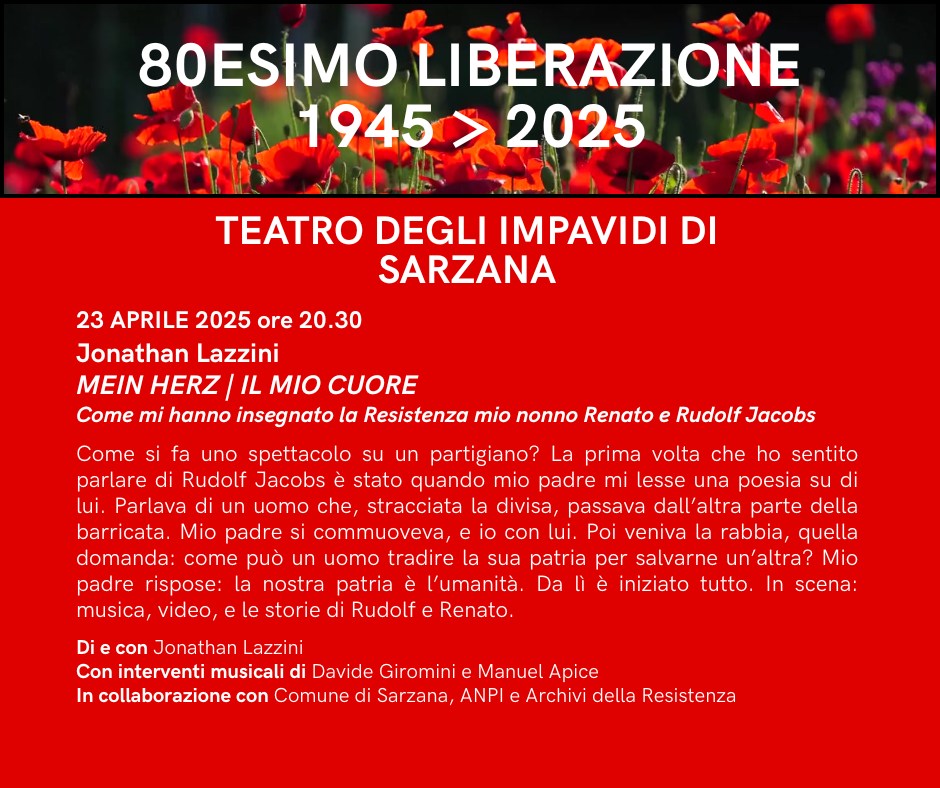 Il 23 aprile alle 20.30 al Teatro degli Impavidi di Sarzana con lo spettacolo “Mein Herz | Il mio cuore” di Jonathan Lazzini,
